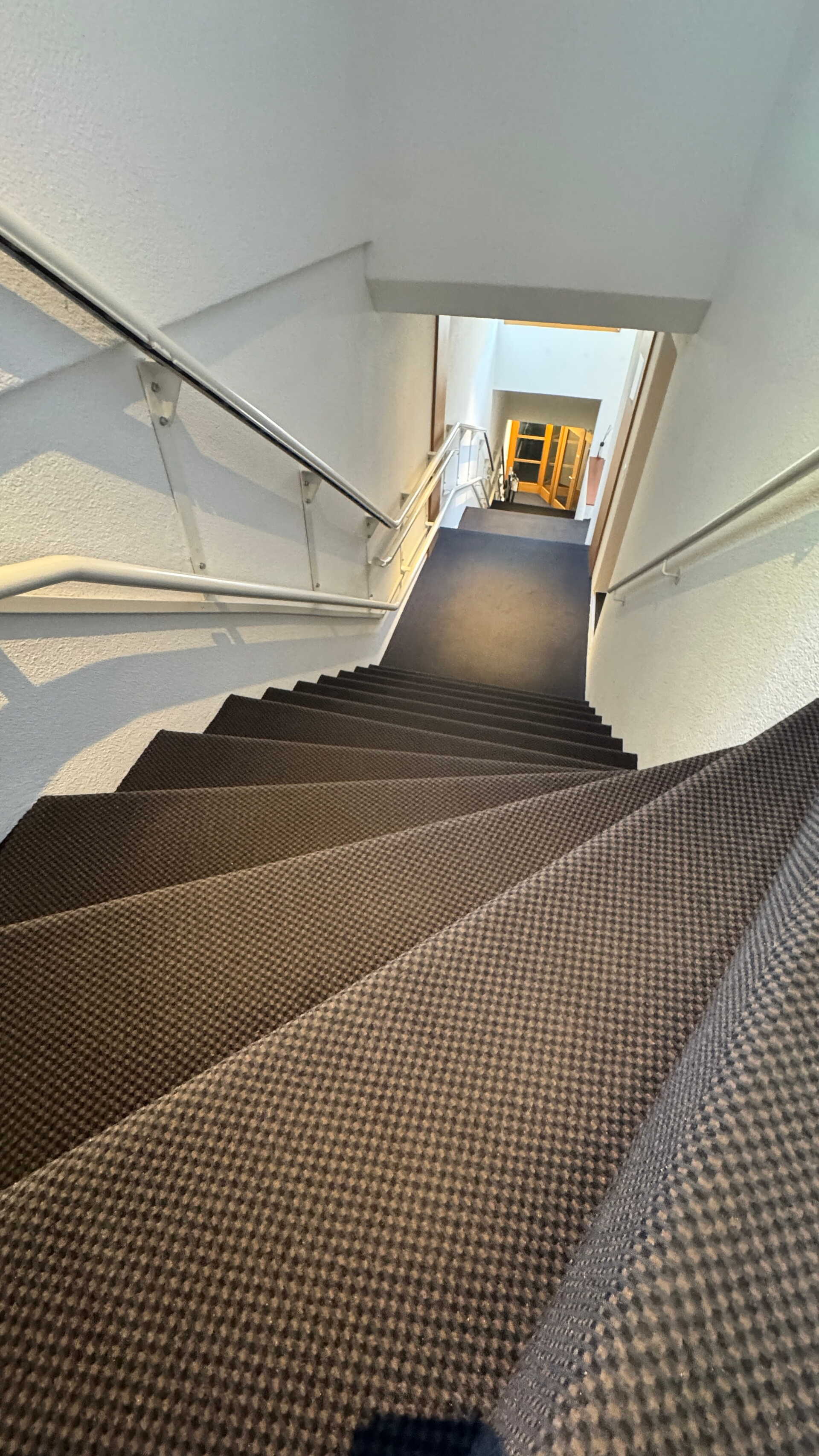 We found the key and entered the building through the garage as instructed, and then through a second door to the small lobby. The listing assured us there was an elevator. Unfortunately, the listing did not mention that in order to get to the elevator from the garage we had to first walk up 35 steep steps with our luggage!